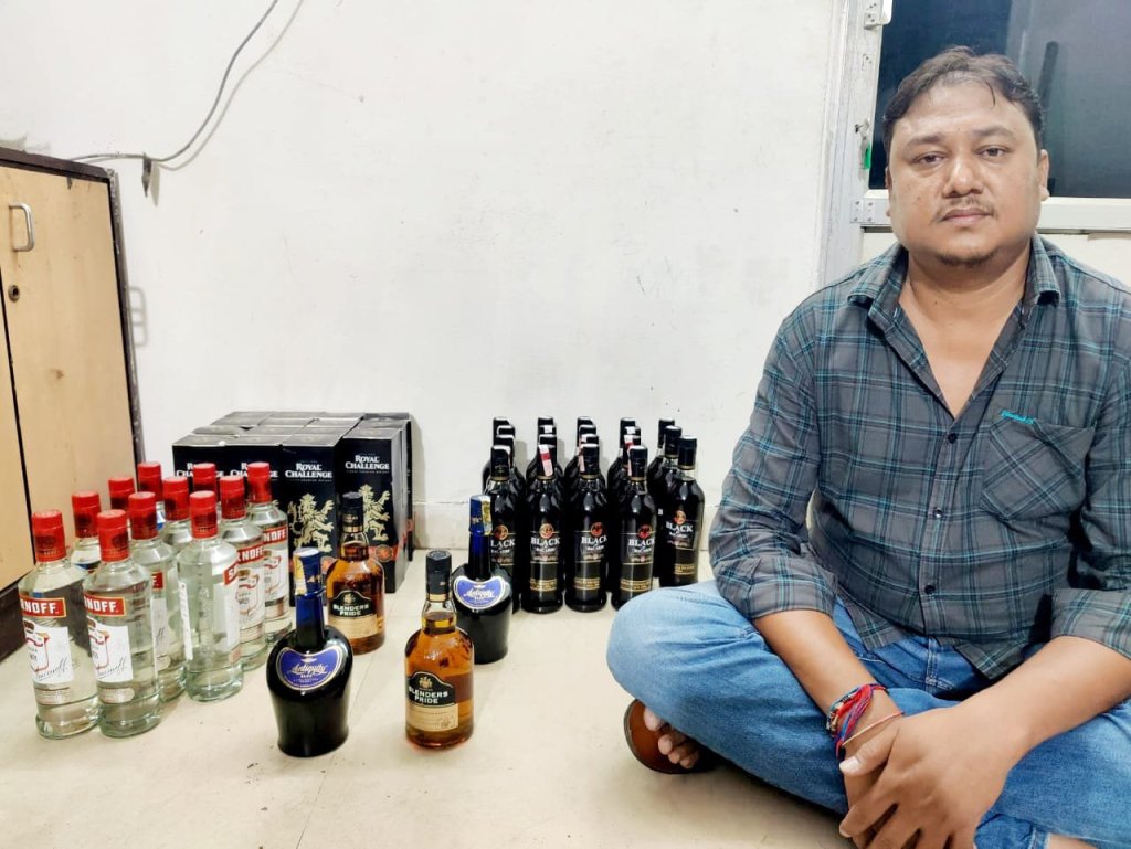 ઇગ્લીશ દારૂનો ગણનાપાત્ર કેશ શોધી કાઢતી અંજાર પોલીસ મહે.પોલીસ મહાનિરીક્ષક સા.શ્રી જે.આર.મોથલીયા સાહેબ તથા પોલીસ અધિક્ષક શ્રી મહેન્દ્ર બગડીયા સાહેબ પુર્વ કચ્છ ગાંધીધામ તથા નાયબ પોલીસ અધિક્ષક સા . શ્રી એમ.પી.ચૌધરી સાહેબ અંજાર વિભાગનાઓની સુચના તથા માર્ગદર્શન હેઠળ પ્રોહીબીશનની બદીને નેસ્ત નાબૂદ કરવા સૂચના કરેલ હોઇ જે અન્વયે પોલીસ ઇન્સપેક્ટર શ્રી એસ.ડી.સિસોદીયા અંજાર પોલીસ સ્ટેશન નાઓ આવી પ્રોહીબીશનની બદીને નેસ્ત નાબૂદ કરવા સારૂ સતત પ્રયત્નશીલ રહી પોલીસ સ્ટેશન વિસ્તારમા ચાલતી આવી પ્રવૃતિ કરતા ઇસમો પર સ્ટાફના માણસો તથા ખાનગી બાતમીદારો મારફતે સતત વોચ રાખી તે દરમ્યાન પોલીસ ઇન્સપેક્ટરશ્રી એસ.ડી.સિસોદીયા અંજાર પોલીસ સ્ટેશન નાઓને ખાનગી રાહે ચોક્કસ બાતમી હકીકત મળેલ છે કે , મેઘપર ( બો ) માં આવેલ બાગેશ્રી સોસાયટીમાં મ.નં -૧૪૫ વાળામાં રહેતો જીતેન્દ્ર ભાટીયા પોતાના રહેણાંક મકાનમાં ગે.કા. રીતે ભારતીય બનાવટના વિદેશીદારૂ રાખી વેચાણ કરતા હોવાની ચોક્કસ બાતમી હકીકત આધારે સ્ટાફના માણસો સાથે રેઇડ કરી પ્રોહી મુદામાલ સાથે મજકૂર ઇસમને પકડી પાડી કાયદેસરની કાર્યવાહિ હાથ ધરેલ છે . પકડાયેલ આરોપી : ( ૧ ) જીતેન્દ્ર પરસોતમ ભાટીયા ઉ.વ .૩૬ રહે.મ.નં -૧૪૫ , બાગેશ્રી સોસાયટી , મેઘપર ( બો ) તા.અંજાર * * કુલ્લે કિ.રૂ .૪૦,૨૮૦ / * કબ્જે કરેલ મુદામાલ : ( ૧ ) ભારતીય બનાવટની વિદેશી દારૂની કંપની શીલબંધ બોટલો નંગ -૫૪ કિ.રૂ. ૩૭,૭૮૦ / ( ૨ ) મોબાઇલ ફોન નંગ -૦૧ કિ.રૂ .૨૫૦૦ / ( ૩ ) લાઈટબીલ નંગ -૦૧ કિ.રૂ .૦૦ / સાથે અંજાર પોલીસ સ્ટાફના માણસો સાથે રહેલ હતા . આ કામગીરીમાં અંજાર પોલીસ સ્ટેશનના પોલીસ ઇન્સપેક્ટર શ્રી એસ.ડી.સિસોદીયા