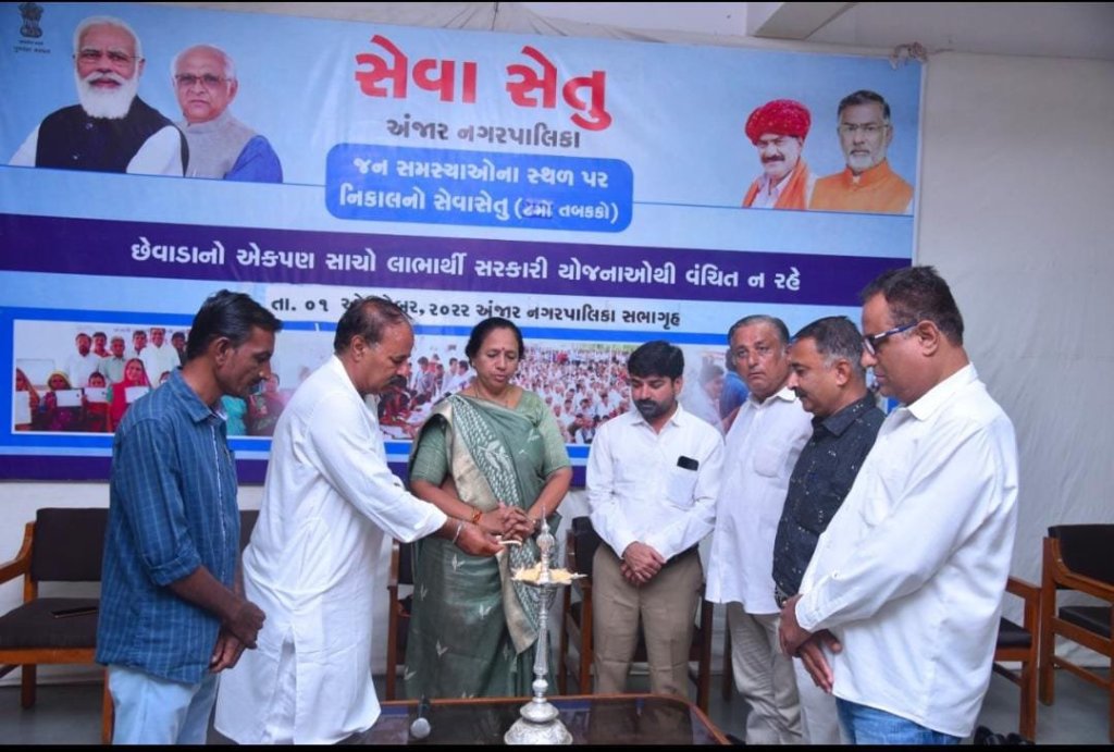 કાર્યક્રમના અઘ્યક્ષ સ્થાનેથી પોતાનું વ્યકતત્વય આ૫તાં નગરપાલીકાના પ્રમુખ શ્રીમતિ લીલાંવતીબેન ડી. પ્રજા૫તિએ જણાવ્યું હતું કે, રાજય સરકારની તમામ સેવાઓનો તમામ શહેરીજનોને લાભ મળે તે માટે સતત પ્રયત્નશીલ રહે છે. જેના ભાગરૂપે સમયાંતરે આ ”સેવા સેતુ” કાર્યક્રમનું આયોજન કરવામાં આવે છે. જેના ઘ્વારા વિવિઘ યોજનાઓ વિશે તમામ લોકો માહિતગાર થઇ તે યોજનાનો લાભ લે તેવા હેતુસર આ કાર્યક્રમમાં યોજવામાં આવે છે.