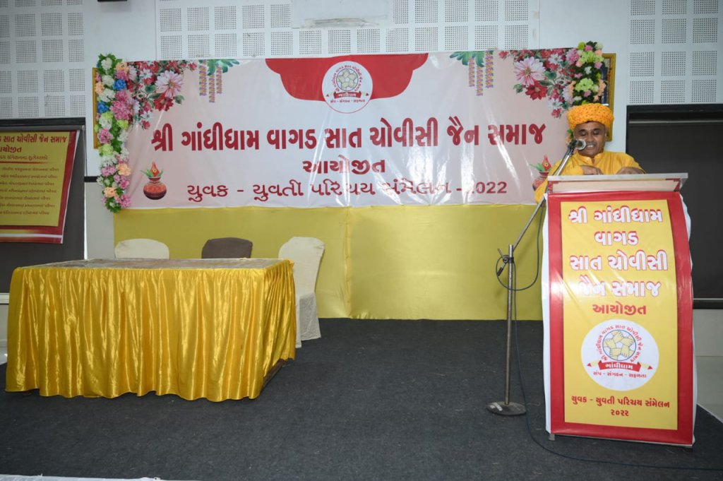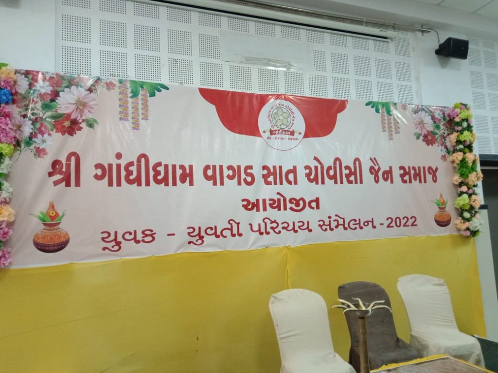 શ્રી કચ્છ વાગડ સાત ચોવીસી જૈન સમાજ ગાંધીધામ સમાજ દ્વારા યુવક યુવતીનો પરિચય સંમેલન નું આજ રોજ પ્રથમ વખત આયોજન ગાંધીધામ મધ્યે ગાંધીધામ સમાજ ના પ્રમુખશ્રી અધ્યક્ષતામાં કરવા માં આવ્યું હતું જેમાં ભારત ભરમાં વસતા સમાજ ના અનેક યુવક યુવતી યો એ ઉત્સાહા ભેર ભાગ લીધેલ હતો આ કાર્ય ક્રમ માં વાગડ સાત ચીવીસી સમાજના દરેક પરિવાર ના સભ્યોએ કાર્યક્રમ ને સફળ બનાવવા ઉત્સાહ પૂર્વક સહયોગ આપેલ. આ કાર્યક્રમ માં સંમેલનના હોદેદાર શ્રીયો તથા માન્યમંડળના સભ્યો આમંત્રણ ને માન આપીને પધારેલ અને કાર્યક્રમ ને બીરદાવેલ યુવક યુવતીનો પરિચય સંમેલન સફળતા પૂર્વક હર્ષ અને આનંદ થી પધારેલ તમામ નો આભાર માની પૂર્ણ કરવા માં આવેલ. આ પરિચય સંમેલન ની રૂપરેખા તથા સફળ બનાવવા પ્રમુખ શ્રી નરેન્દ્રભાઈ વારૈયા તથા ઉપપ્રમુખશ્રી કમલેશભાઈ વોરા,મંત્રીશ્રી ગૌતમભાઈ પુજ તથા શીતલભાઈ ત્રેવાડીયા, હાર્દિકભાઈ મહેતા, વિનોદભાઈ વારૈયા, જયેશભાઇ સંઘવી, દીપકભાઈ બાબરીયા, સંદીપભાઈ લોદરીયા જહેમત ઉઠાવેલ છે.